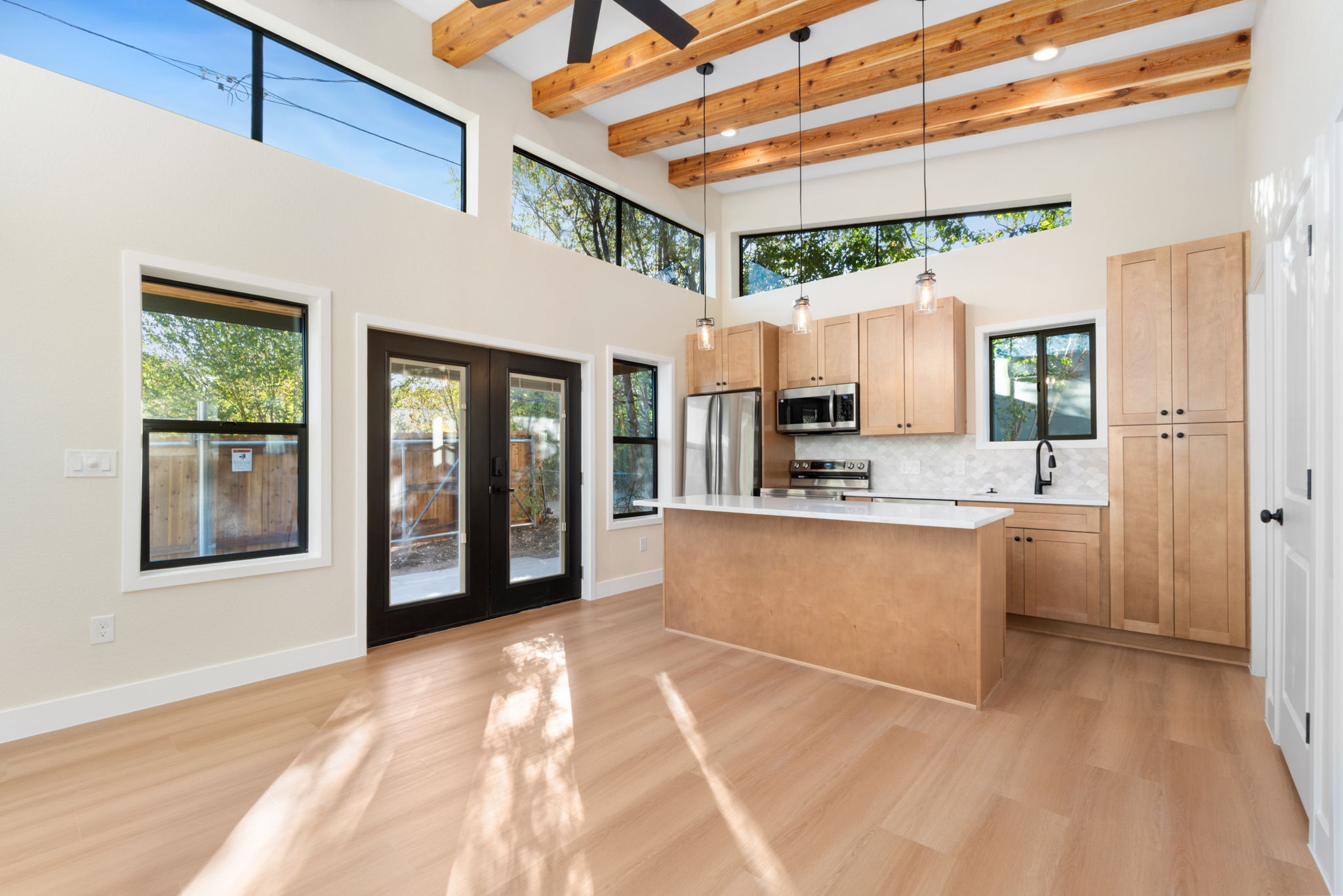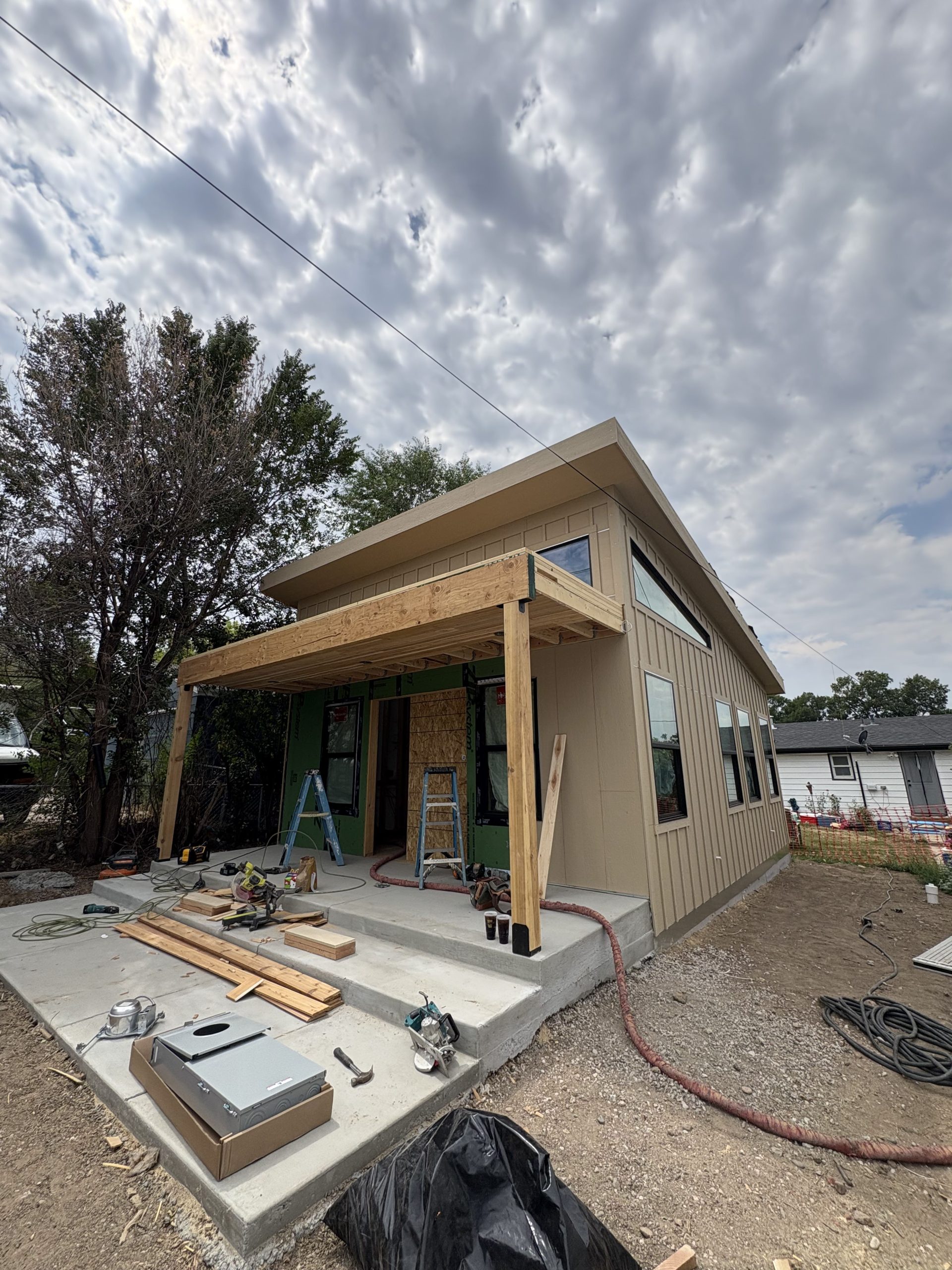 Every inch of this 477 square foot, Ann model, tells a story—crafted with care, natural wood beams, and a sunny patio that invites connection and comfort